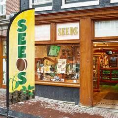 - Flower Sale feather flags stand tall and sway with the wind, making them highly visible and attention-grabbing