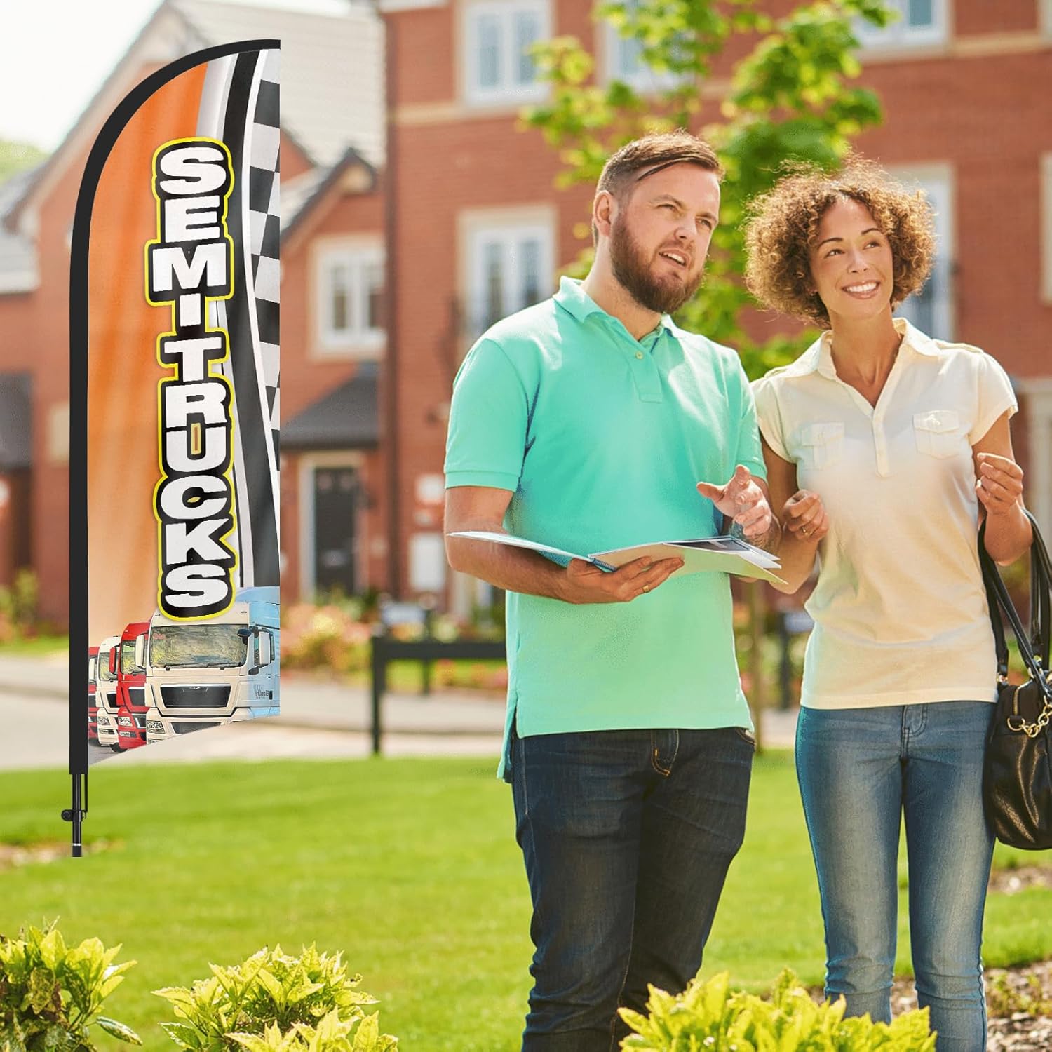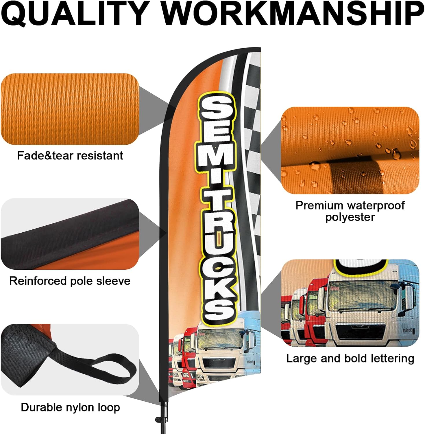 - 【Attention-Grabbing】Semitrucks feather flags stand tall and sway with the wind, making them highly visible and attention-grabbing. The Semitrucks flags’ unique shape and vibrant colors make them stand out in crowded environments, attracting many potential customers from a distance.