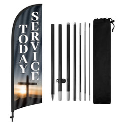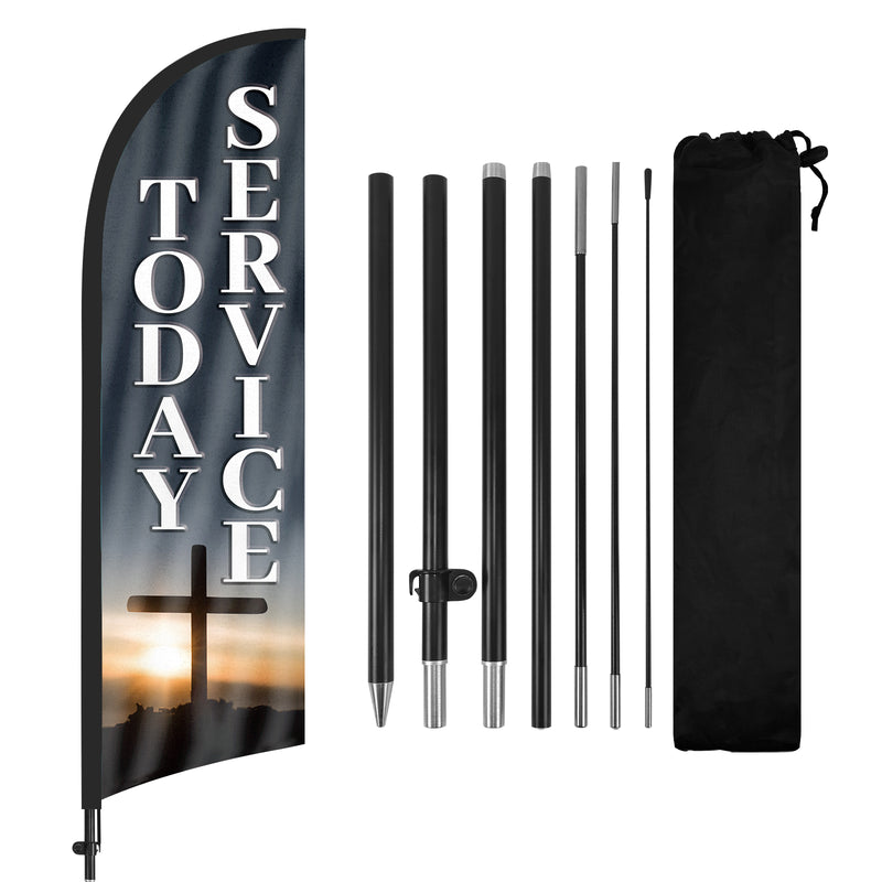 - 【Portable and Easy Setup】This Service Today feather flag pole kit includes 1 swooper flag+6 rods+1 ground stake and comes with 1 storage bag. They can be quickly set up and taken down, requiring minimal effort.