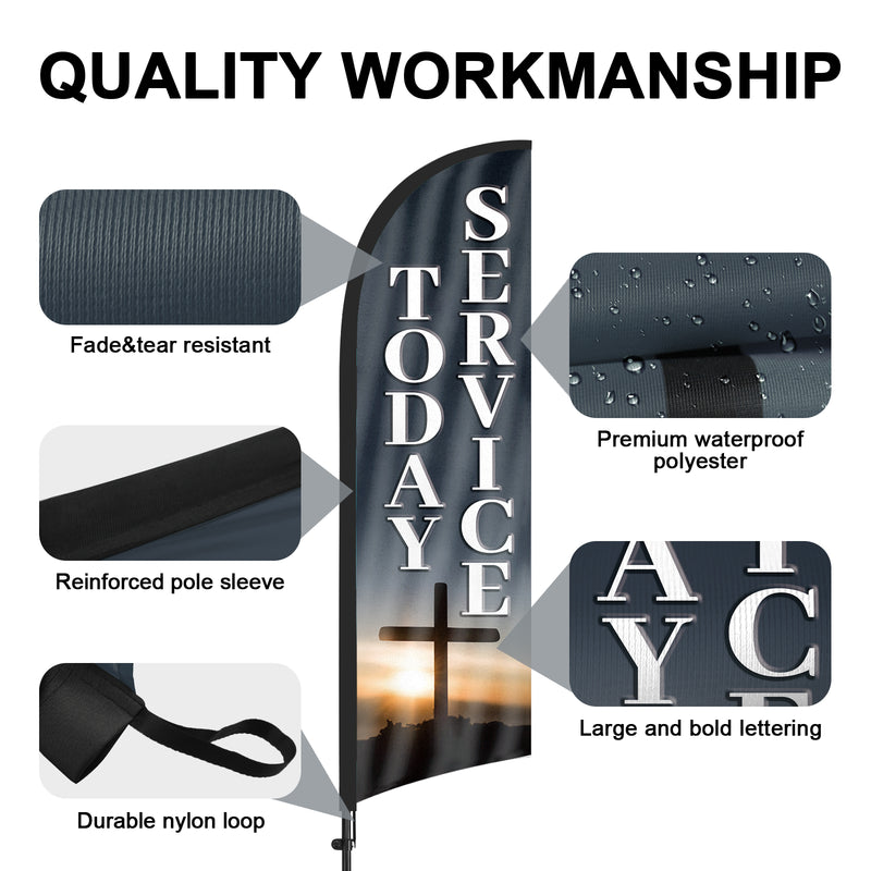 - 【Weather Resistance】These Service Today feather flags are designed to withstand various weather conditions, high-quality aluminum and fiberglass pole, tear resistant polyester fabric making it sturdy and heavy-duty to be held up well even in rain, snow, sleet and strong winds.