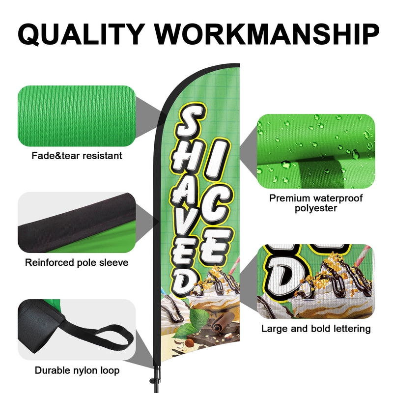 - 【Weather Resistance】These Shaved Ice feather flags are designed to withstand various weather conditions, high-quality aluminum and fiberglass pole, tear resistant polyester fabric making it sturdy and heavy-duty to be held up well even in rain, snow, sleet and strong winds.