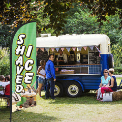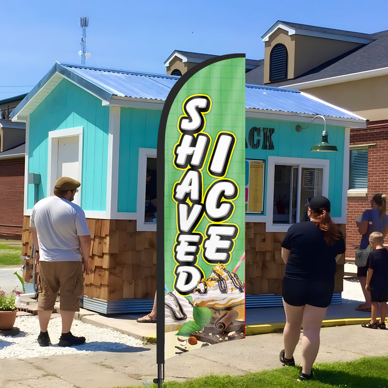 - 【Attention-Grabbing】Shaved Ice feather flags stand tall and sway with the wind, making them highly visible and attention-grabbing. The Shaved Ice flags’ unique shape and vibrant colors make them stand out in crowded environments, attracting many potential customers from a distance.
