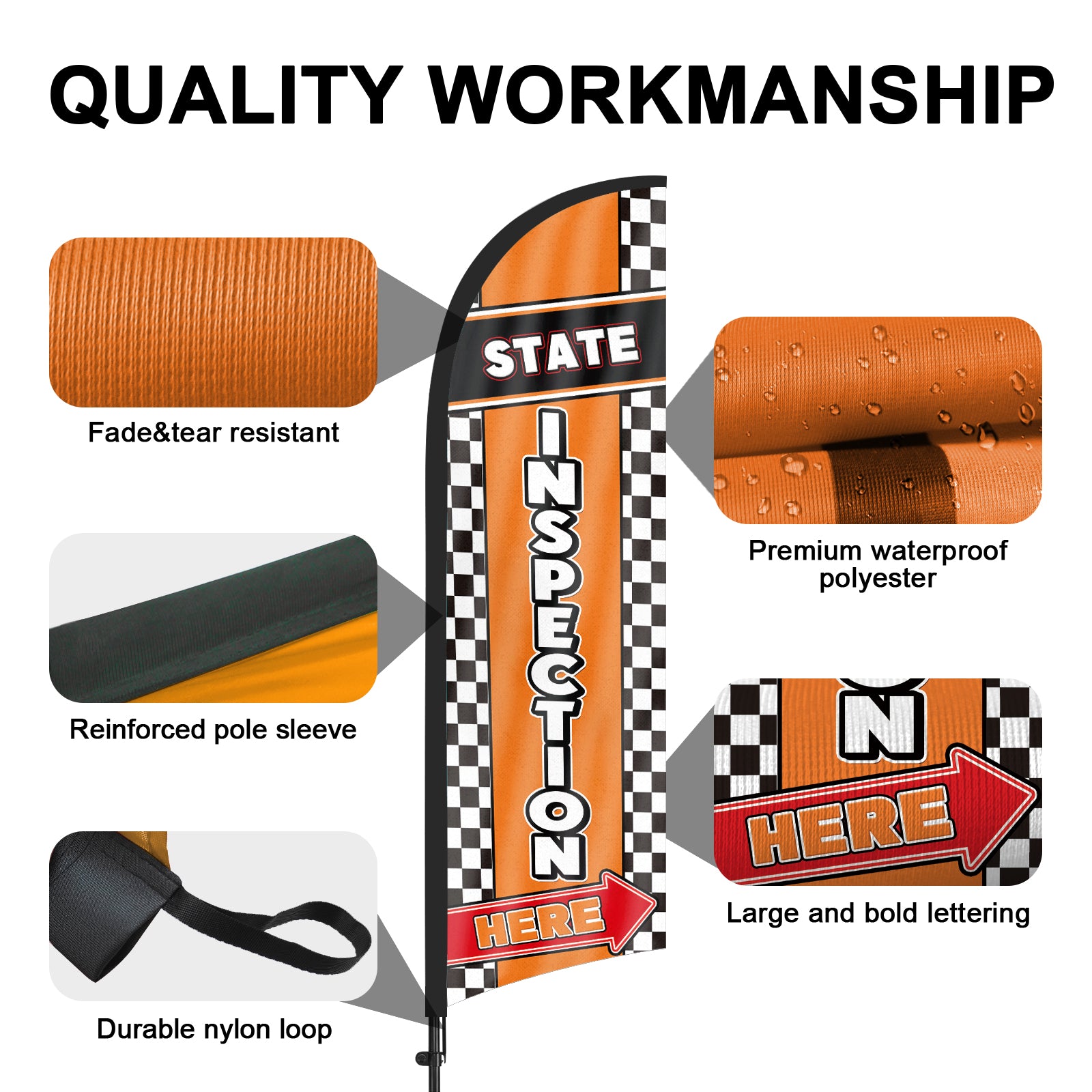 - 【Attention-Grabbing】State Inspection Here feather flags stand tall and sway with the wind, making them highly visible and attention-grabbing. The State Inspection Here flags’ unique shape and vibrant colors make them stand out in crowded environments, attracting many potential customers from a distance.