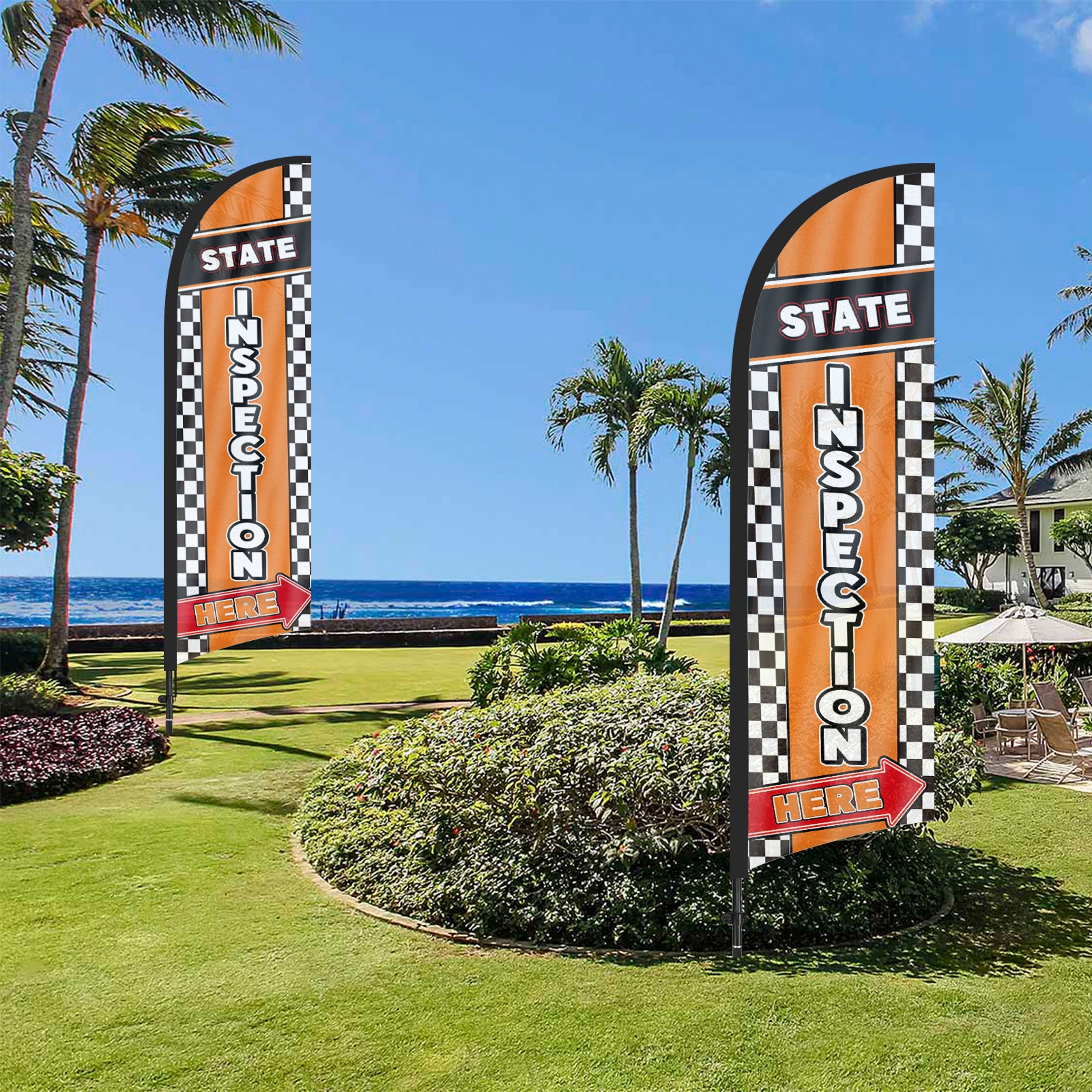 - 【Cost-Effective Advertising】The State Inspection Here sign offer a cost-effective advertising solution compared to other traditional forms of outdoor advertising. This State Inspection Here flag size is (8.2ft/98in) tall and (1.8ft/22in) wide, visible enough from far away, ensures your business stands out from the crowd, grabbing attention and increasing foot traffic.