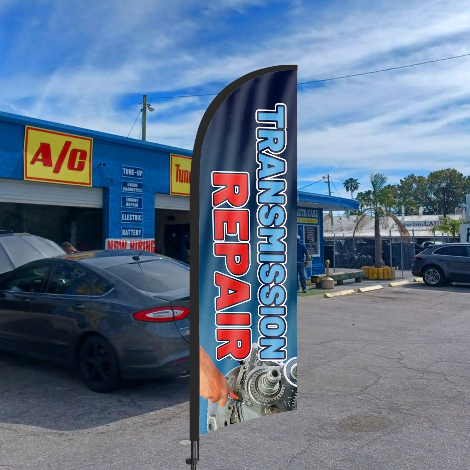 8ft Transmission Repair Feather Flag with Pole & Stake