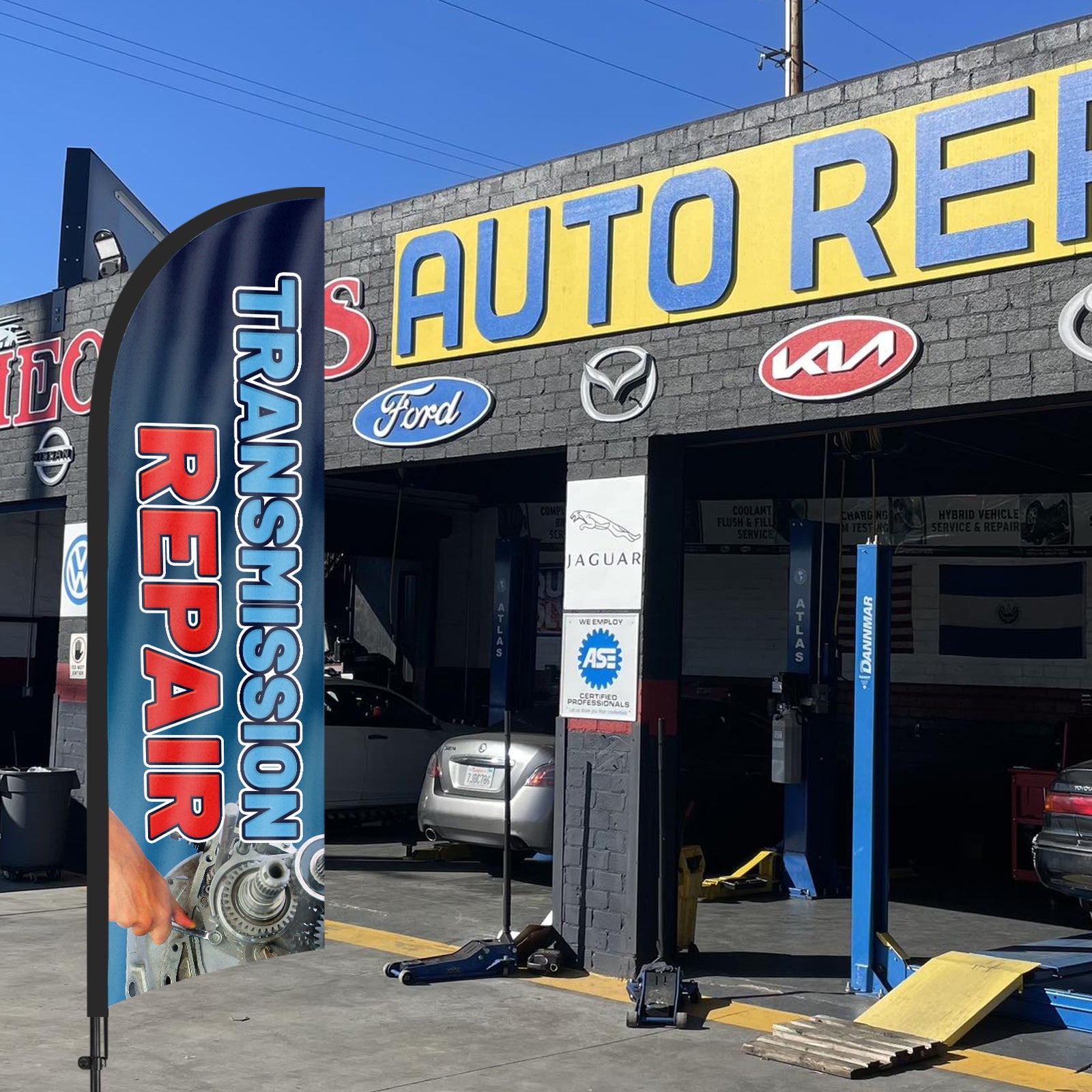 - 【Attention-Grabbing】Transmission Repair feather flags stand tall and sway with the wind, making them highly visible and attention-grabbing. The Transmission Repair flags’ unique shape and vibrant colors make them stand out in crowded environments, attracting many potential customers from a distance.