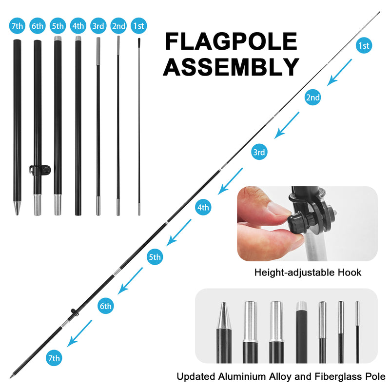 - 【Portable and Easy Setup】This feather flag pole kit includes 1 swooper flag+6 rods+1 ground stake and comes with 1 carry bag. They can be quickly set up and taken down, requiring minimal effort.