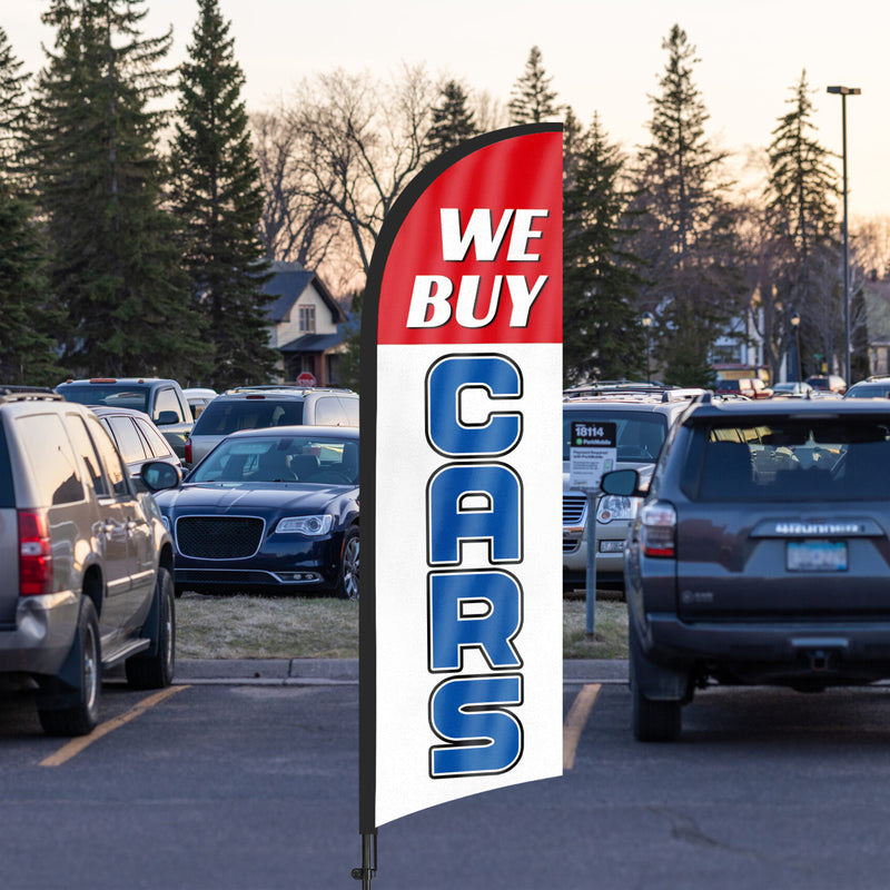 - 【Portable and Easy Setup】This We Buy Cars feather flag pole kit includes 1 swooper flag+6 rods+1 ground stake and comes with 1 carry bag. They can be quickly set up and taken down, requiring minimal effort.