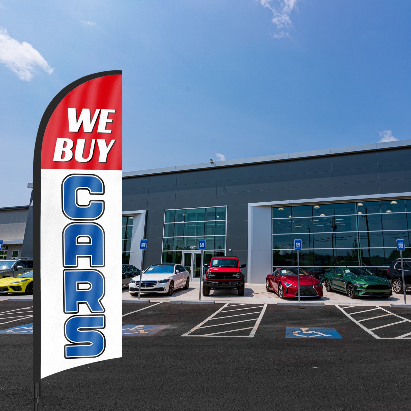 - 【Attention-Grabbing】We Buy Cars feather flags stand tall and sway with the wind, making them highly visible and attention-grabbing. The We Buy Cars flags’ unique shape and vibrant colors make them stand out in crowded environments, attracting many potential customers from a distance.