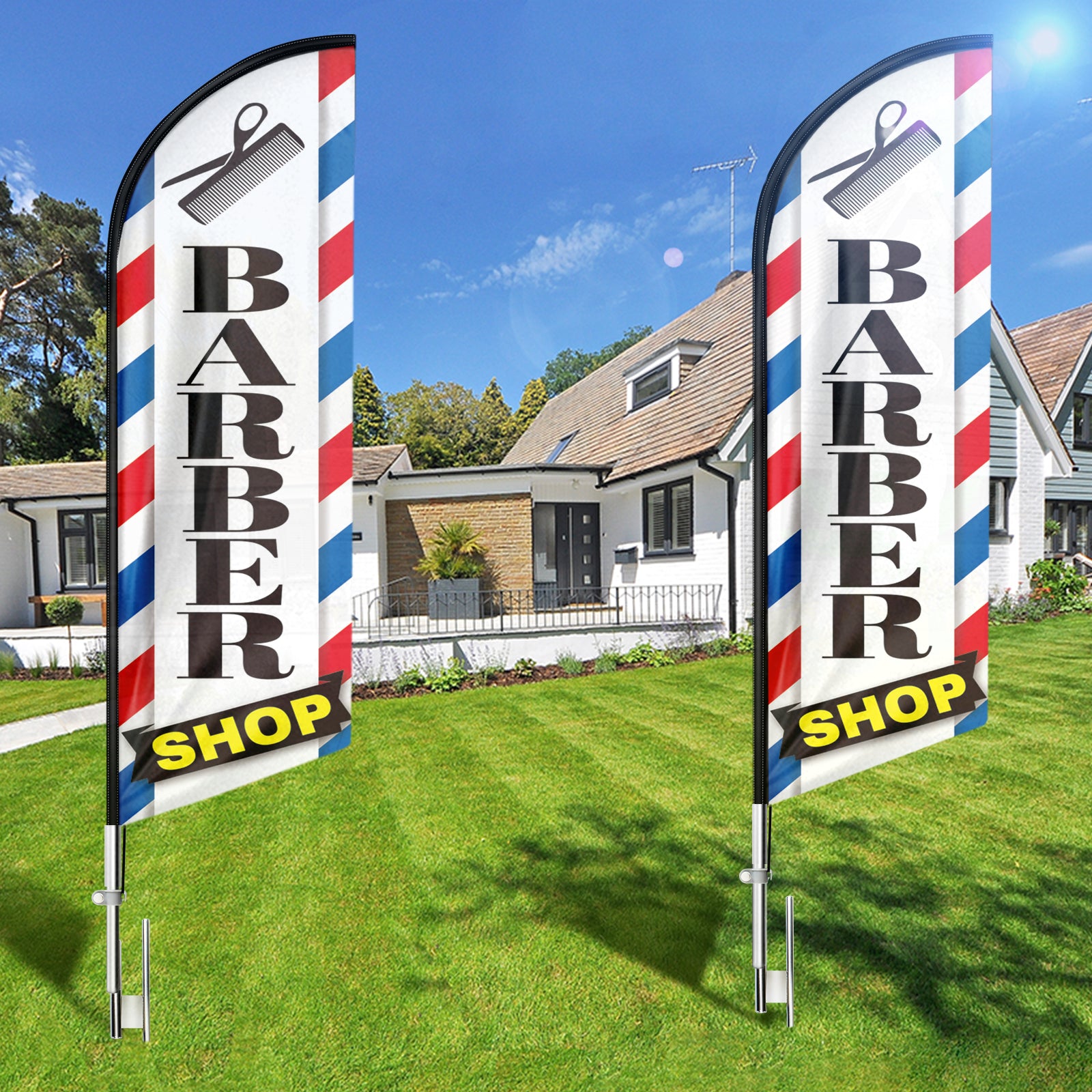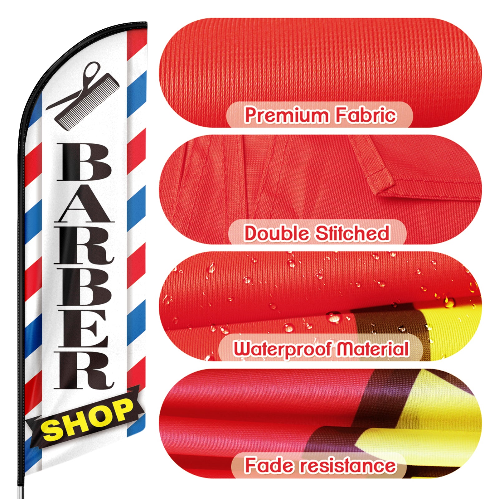 - 【Excellent Advertisement Tool】The Barber Shop feather flag size is very large (8Ft/96in x 2 Ft/25in) visible enough from far away, you may put the feather banner up in front of your business, at the entry or on the sidewalk.