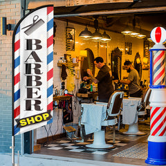 - 【Cost-effective】A must-have and cost-effective way to increase traffic to business. Put the stake in the ground or other stand bases to display the Barber Shop flag sign daily.