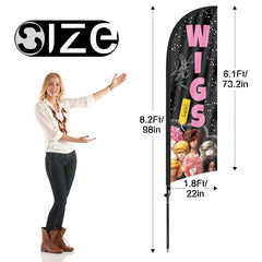 - 【Cost-Effective Advertising】The sign offer a cost-effective advertising solution compared to other traditional forms of outdoor advertising. This flag size is (8.2ft/98in) tall and (1.8ft/22in) wide, visible enough from far away, ensures your business stands out from the crowd, grabbing attention and increasing foot traffic.
