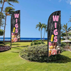 8ft Wigs Black Feather Flag with Pole and Stake