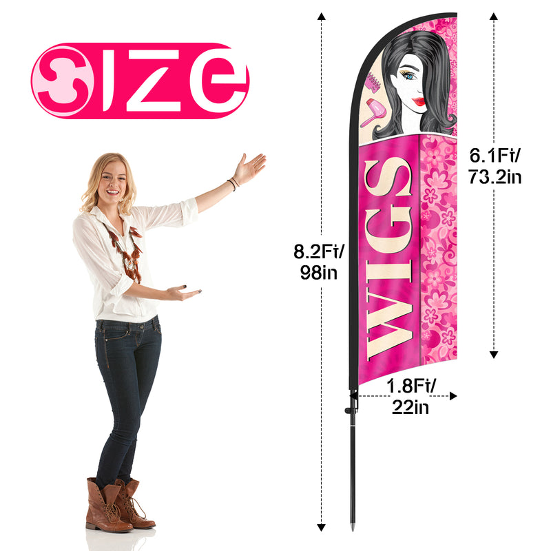 - 【Cost-Effective Advertising】The sign offer a cost-effective advertising solution compared to other traditional forms of outdoor advertising. This flag size is (8.2ft/98in) tall and (1.8ft/22in) wide, visible enough from far away, ensures your business stands out from the crowd, grabbing attention and increasing foot traffic.