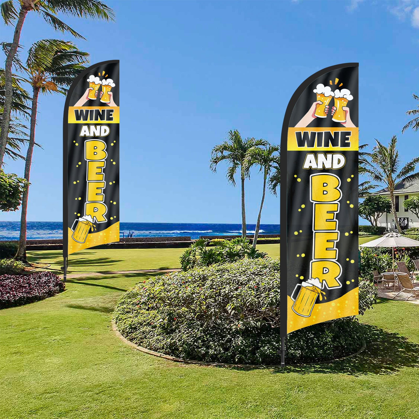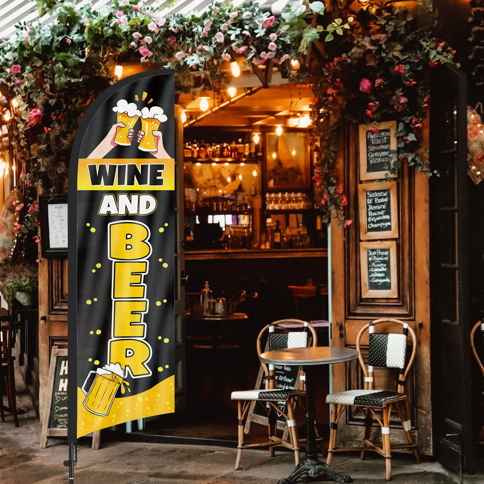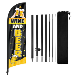 8ft Wine And Beer Black Feather Flag with Pole and Stake