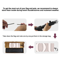 - 【Portable and Easy Setup】This feather flag pole kit includes 1 swooper flag+6 rods+1 ground stake and comes with 1 carry bag. They can be quickly set up and taken down, requiring minimal effort.