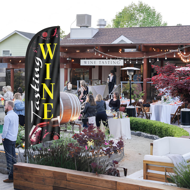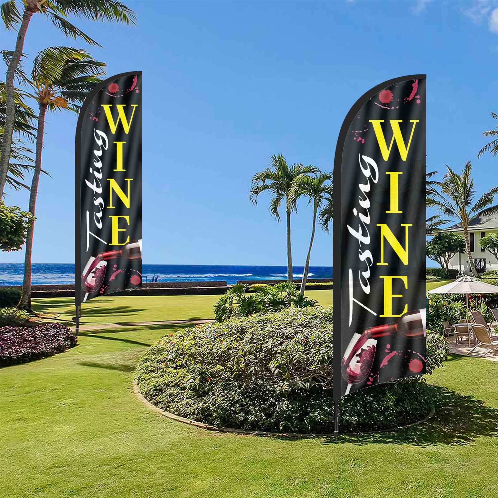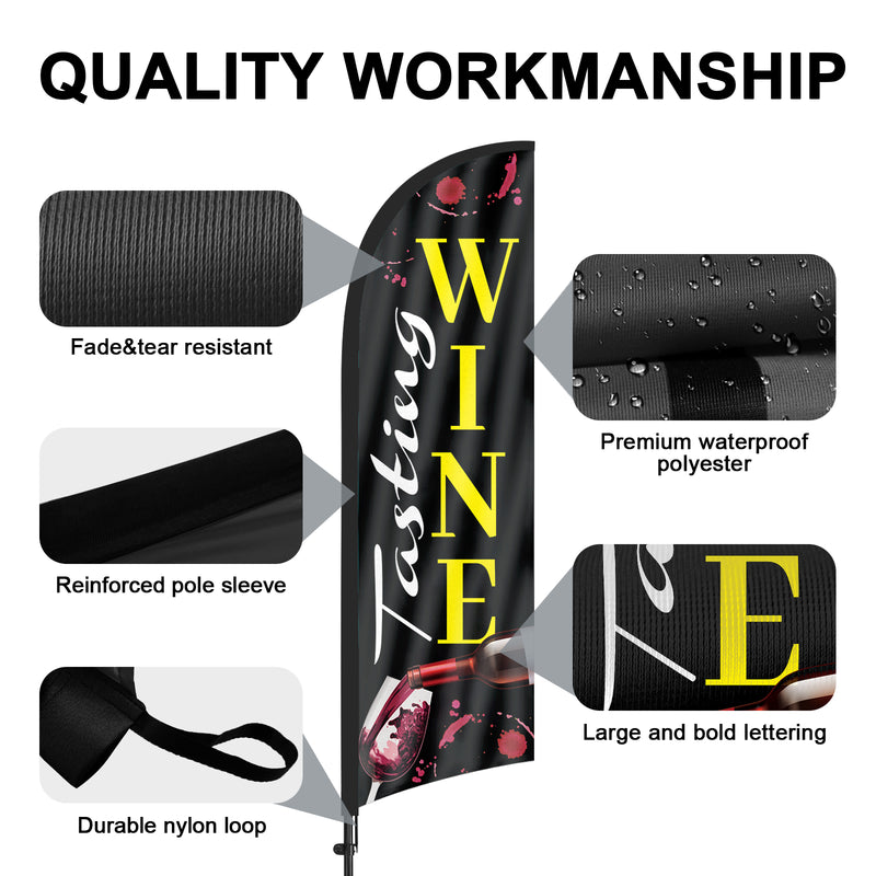 8ft Wine Tasting Black Feather Flag with Pole and Stake