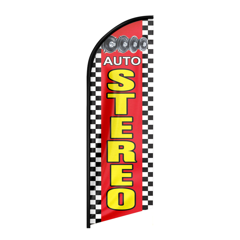 Auto Stereo Feather Flag: Advertising Banner for Auto Stereo Business (8ft Flagpole Not Included)
