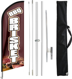 - 🏠【Easy To Assemble and Disassemble】This BBQ Brisket feather flag pole kit includes 1 swooper flag+4 flagpoles+1 ground stake and comes with 1 carry bag. Just snap the pieces together and put the stake in the ground or other stand bases to display the business sign daily and it is portable and easy to pack with the carrying bag when the feather flag pole kit disassembled.