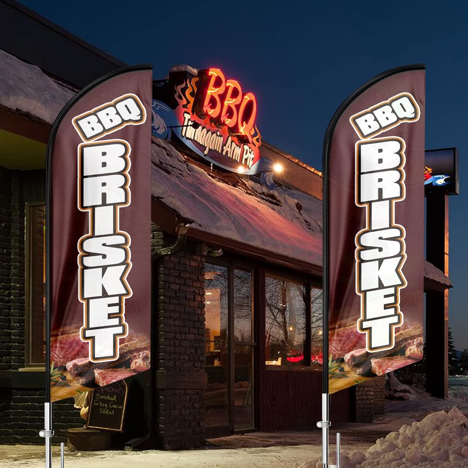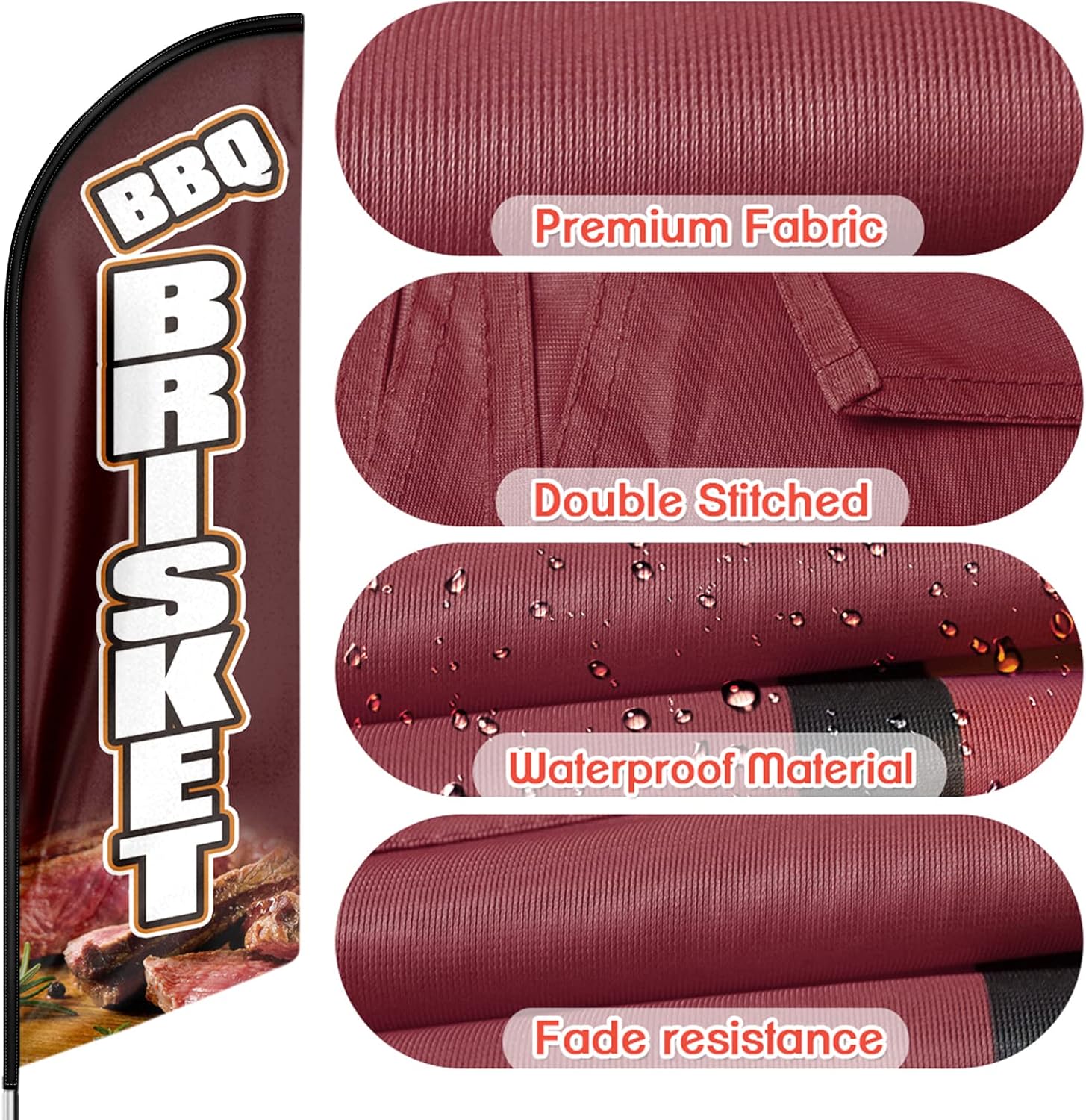 - 🏠【Excellent Advertisement Tool】The BBQ Brisket feather banner size is very large (11ft/ 340cm) tall and (2.1 ft/ 64cm) wide, visible enough from far away, you may put the feather banner up in front of your business, at the entry or on the sidewalk, really a must-have and cost-effective way to increase traffic to business.