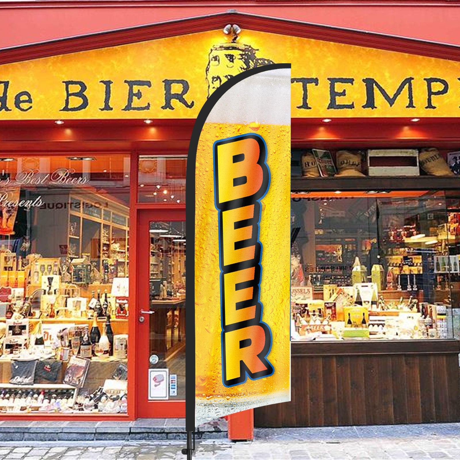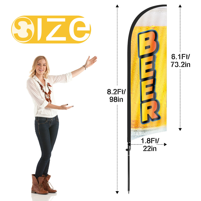 - 【Cost-Effective Advertising】The Beer sign offer a cost-effective advertising solution compared to other traditional forms of outdoor advertising. This Beer flag size is (8.2ft/98in) tall and (1.8ft/22in) wide, visible enough from far away, ensures your business stands out from the crowd, grabbing attention and increasing foot traffic.