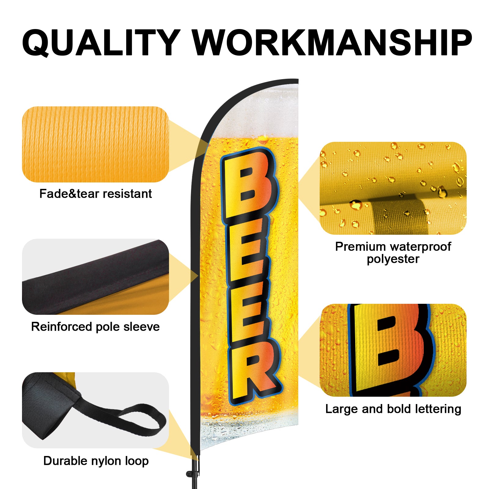 - 【Weather Resistance】These Beer feather flags are designed to withstand various weather conditions, high-quality aluminum and fiberglass pole, tear resistant polyester fabric making it sturdy and heavy-duty to be held up well even in rain, snow, sleet and strong winds.