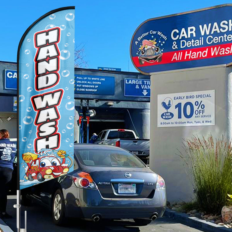 Car Wash Signs-8ft Hand Wash Feather Flag for Hand Wash Business