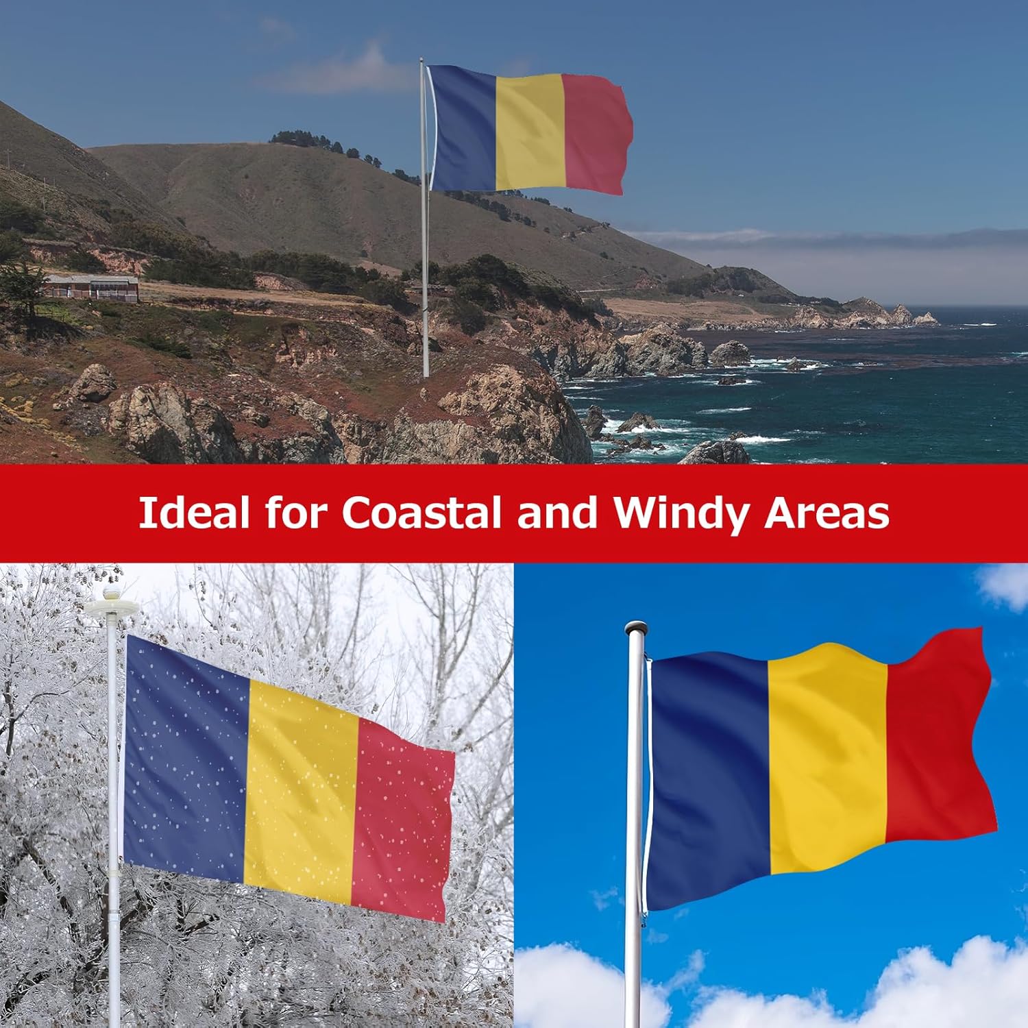 - 【400D Heavy-Duty Anti-Tear Flag】Crafted from premium 400D polyester, this flag is thicker, heavier, and more durable than standard flags. It’s waterproof, UV-resistant, and features a smooth, deluxe finish. The fly end is reinforced with a canvas header and four rows of lock stitching, providing exceptional resistance to fraying and tearing—perfect for coastal or high-wind areas.