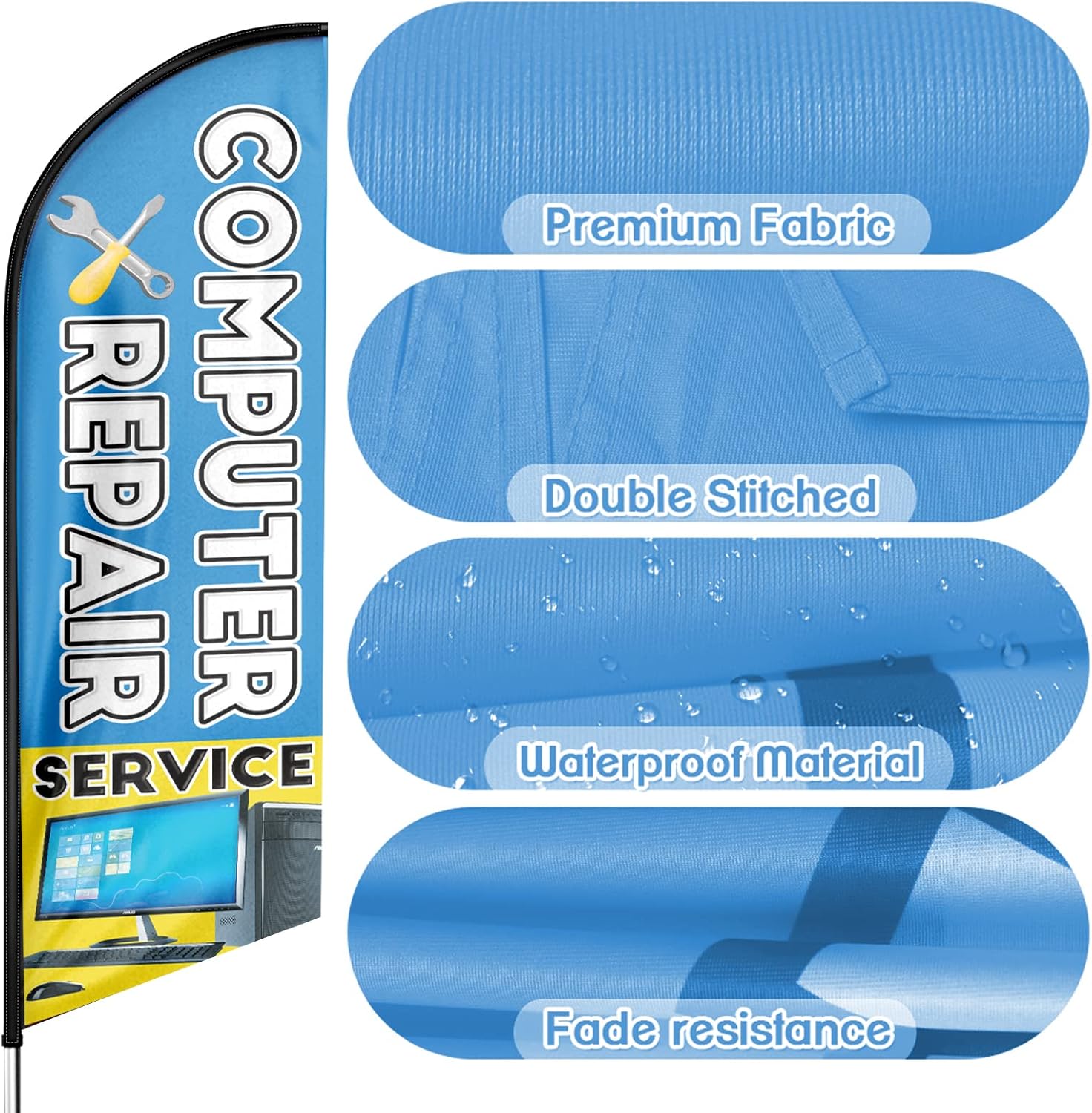 - 【Great Eye Catcher】Our Computer Repair Feather Flags will be very eye catching for indoor and outdoor use and make your location or events stand out, the flying feather banner with vibrant colors will grab attention at a distance to attract many new customers to your store.