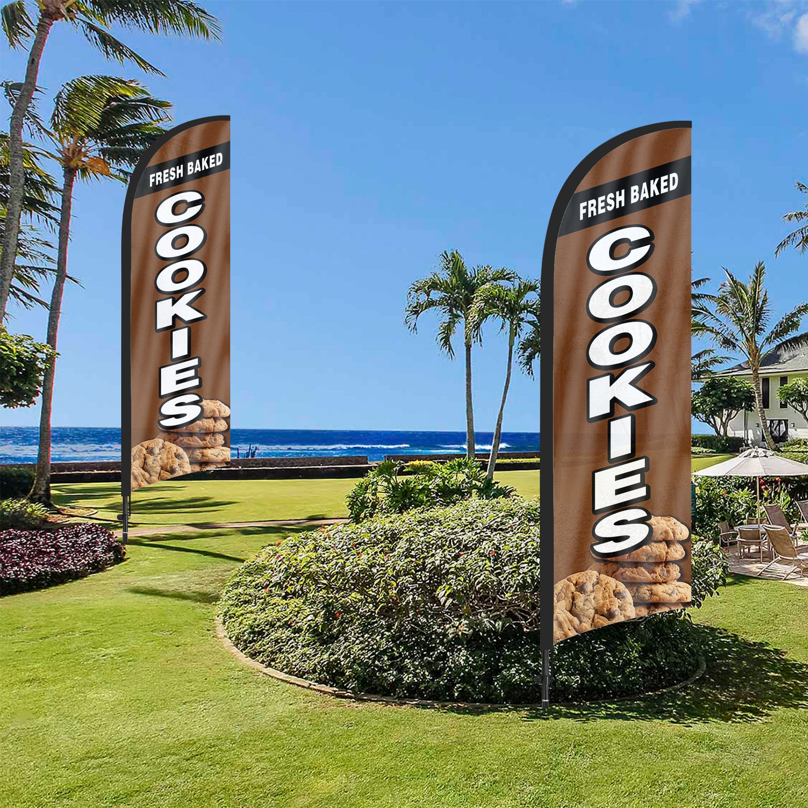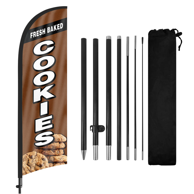 - 【Portable and Easy Setup】This Fresh Baked Cookies feather flag pole kit includes 1 swooper flag+6 rods+1 ground stake and comes with 1 storage bag. They can be quickly set up and taken down, requiring minimal effort.