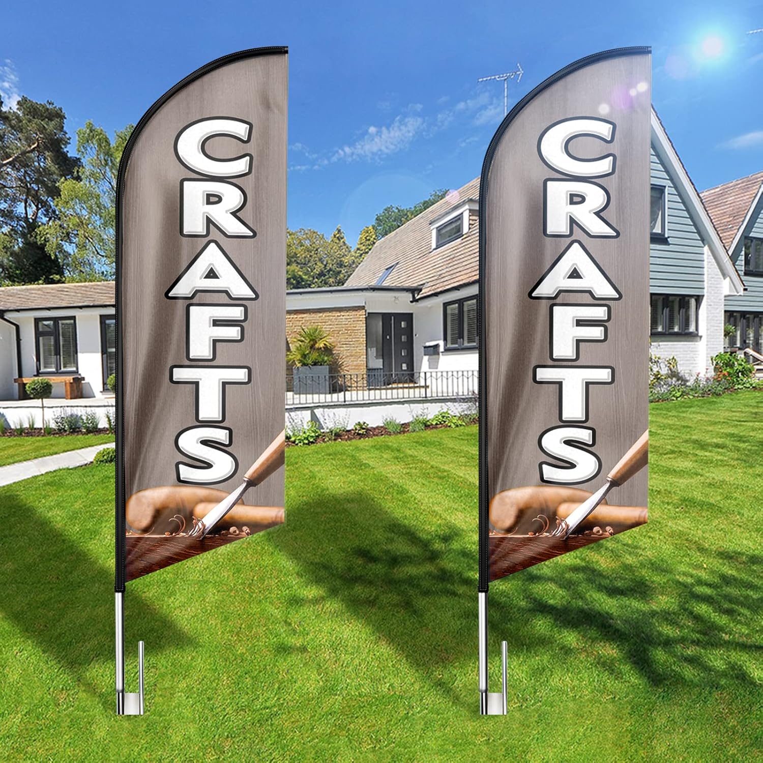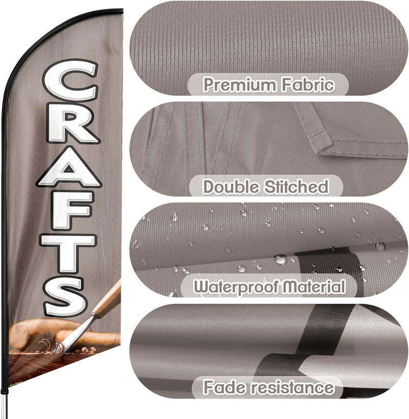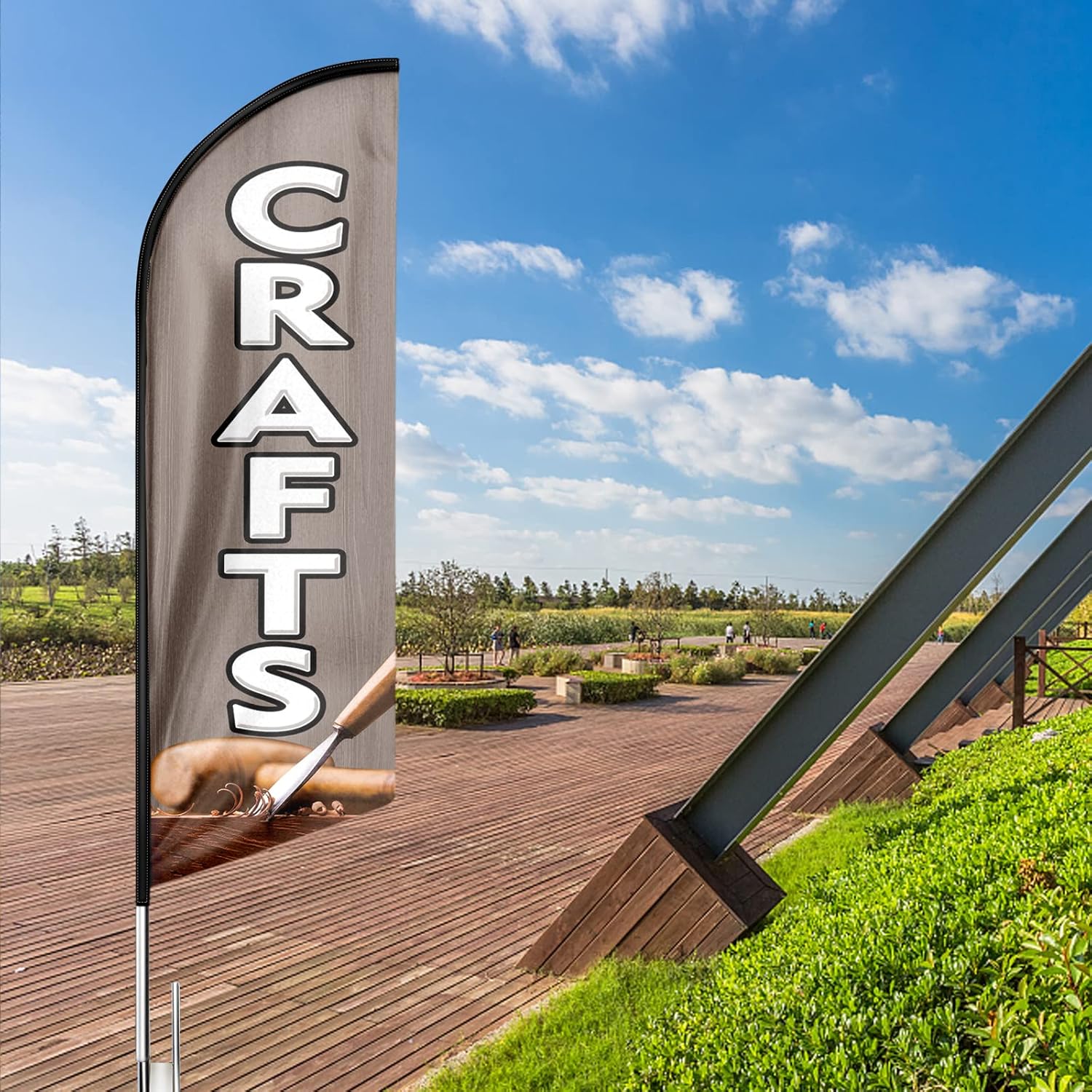 - 【Cost-effective】A must-have and cost-effective way to increase traffic to business. Put the stake in the ground or other stand bases to display the Crafts flag sign daily.