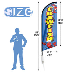 - 🏠【Excellent Advertisement Tool】The Crawfish feather banner size is very large (11ft/ 340cm) tall and (2.1 ft/ 64cm) wide, visible enough from far away, you may put the feather banner up in front of your business, at the entry or on the sidewalk, really a must-have and cost-effective way to increase traffic to business.
