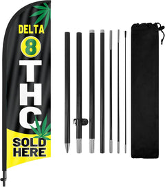 - 【Attention-Grabbing】Delta 8 Sold Here feather flags stand tall and sway with the wind, making them highly visible and attention-grabbing. The Delta 8 Sold Here flags’ unique shape and vibrant colors make them stand out in crowded environments, attracting many potential customers from a distance.