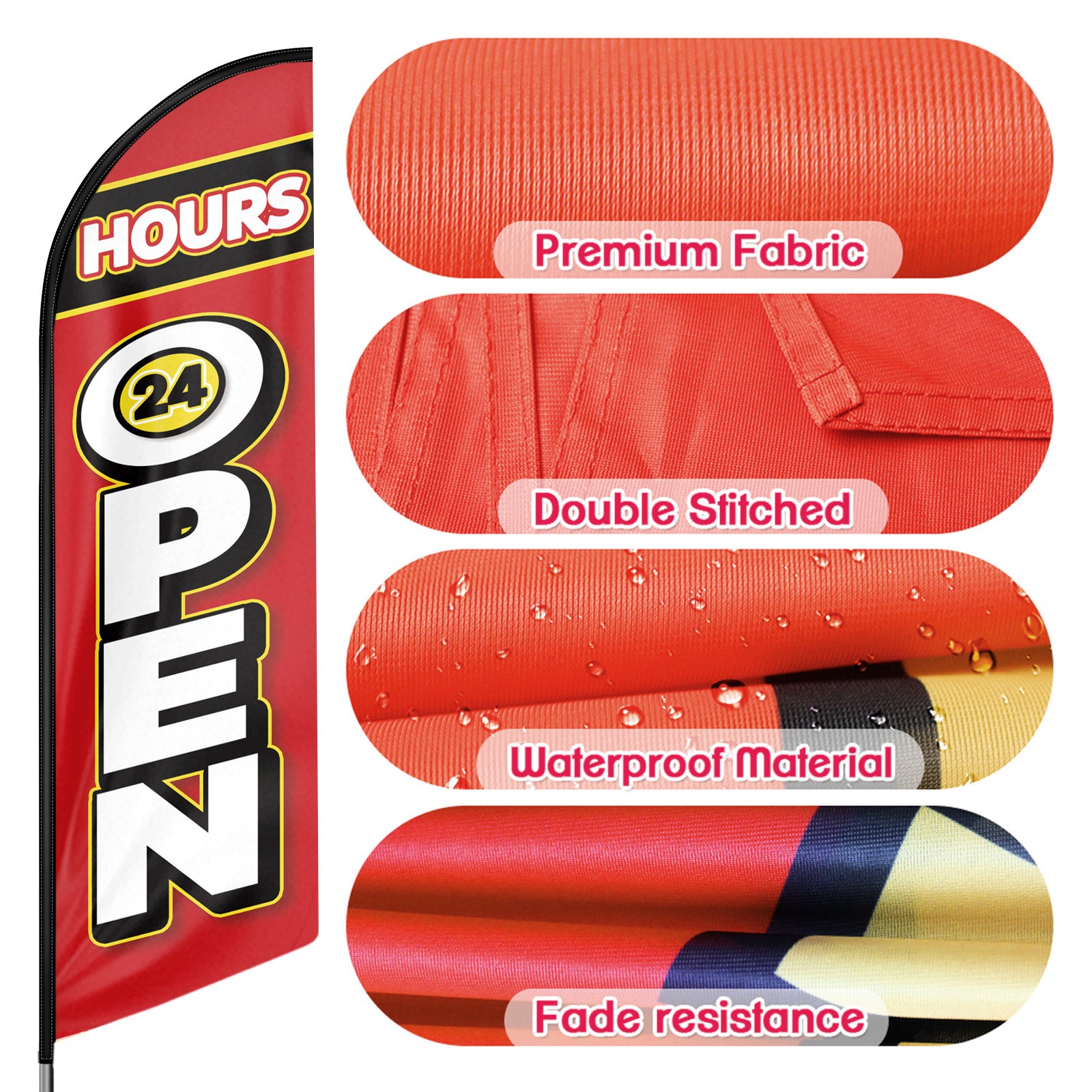 FSFLAG 11ft HOURS 24 OPEN Flag with Pole