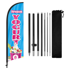 - 【Portable and Easy Setup】This Frozen Yogurt feather flag pole kit includes 1 swooper flag+6 rods+1 ground stake and comes with 1 storage bag. They can be quickly set up and taken down, requiring minimal effort.