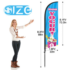 - 【Cost-Effective Advertising】The Frozen Yogurt sign offers a cost-effective advertising solution compared to other traditional forms of outdoor advertising. This Frozen Yogurt flag size is (8.2ft/98in) tall and (1.8ft/22in) wide, visible enough from far away, ensures your business stands out from the crowd, grabbing attention and increasing foot traffic.