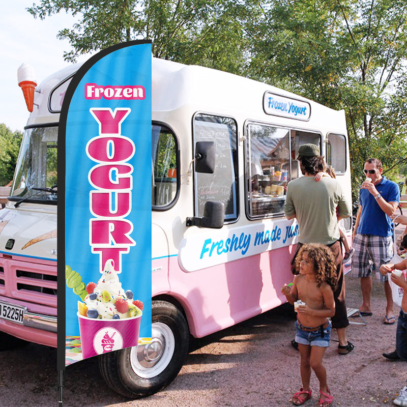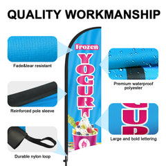 - 【Attention-Grabbing】Frozen yogurt sign stand tall and sway with the wind, making them highly visible and attention-grabbing. The Frozen Yogurt flags’ unique shape and vibrant colors make them stand out in crowded environments, attracting many potential customers from a distance.