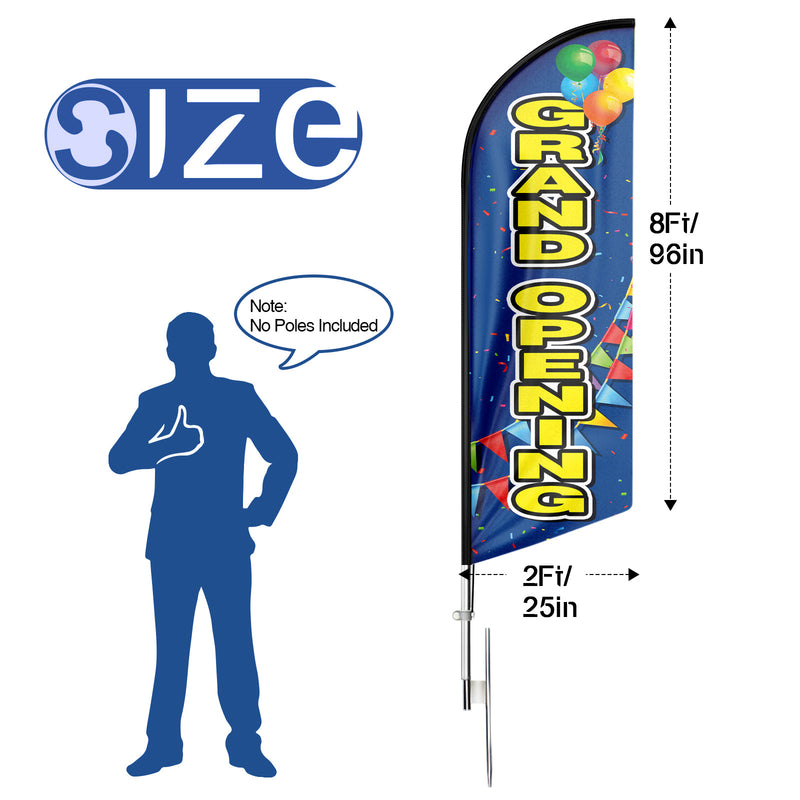 • 【Excellent Advertisement Tool】The Grand Opening feather flag size is very large (8Ft/96in x 2 Ft/25in) visible enough from far away, you may put the feather banner up in front of your business, at the entry or on the sidewalk.