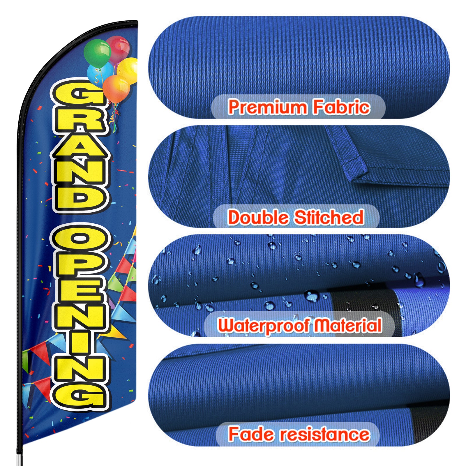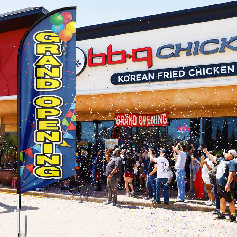 • 【Great Eye Catcher】Our Grand Opening Feather Flags will be very eye catching for indoor and outdoor use and make your location or events stand out, the flying feather banner with vibrant colors will grab attention at a distance to attract many new customers to your store.