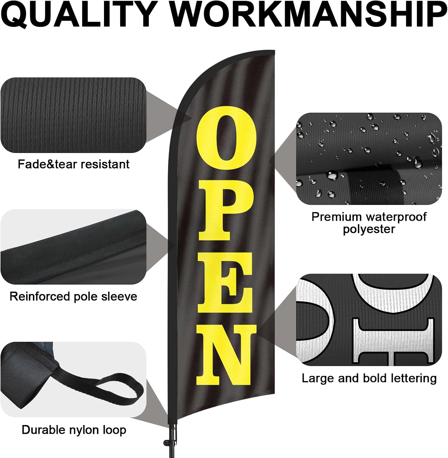 FSFLAG 8FT Open Flag Sign-open flag with pole and ground stake