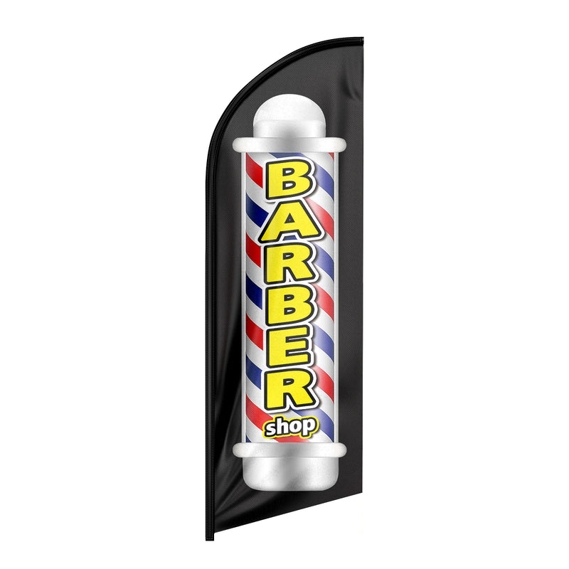 FSFLAG Barber Shop Feather Flag: 8Ft Black Advertising Banner for Barber Shop Business(Flagpole Not Included)