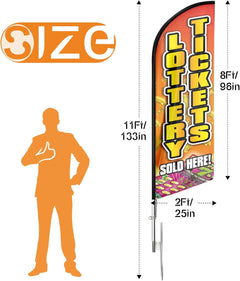 - 🏠【Excellent Advertisement Tool】The Lottery Tickets feather banner size is very large (11ft/ 340cm) tall and (2.1 ft/ 64cm) wide, visible enough from far away, you may put the feather banner up in front of your business, at the entry or on the sidewalk, really a must-have and cost-effective way to increase traffic to business.