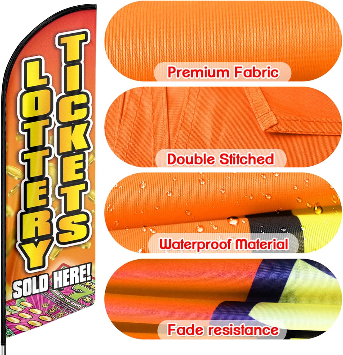 - 🏠【Great Eye Catcher】Our Lottery Tickets Swooper Flag will be very eye catching for indoor and outdoor use and make your location or events stand out, the flying feather banner with vibrant colors will grab attention at a distance to attract many new customers to your store.