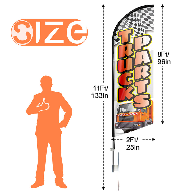 - 🏠【Excellent Advertisement Tool】The Truck Parts feather banner size is very large (11ft/ 340cm) tall and (2.1 ft/ 64cm) wide, visible enough from far away, you may put the feather banner up in front of your business, at the entry or on the sidewalk, really a must-have and cost-effective way to increase traffic to business.