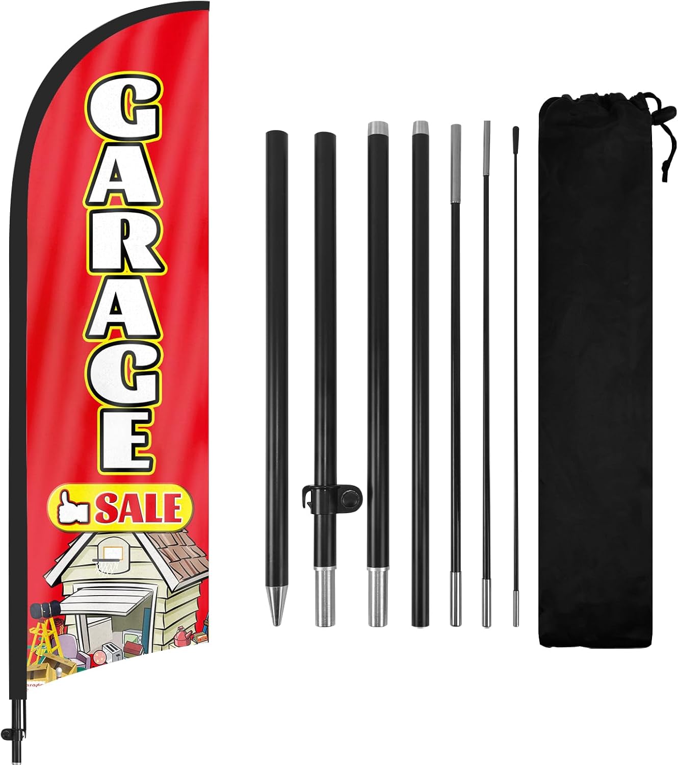 - 【Portable and Easy Setup】This Yard Sale feather flag pole kit includes 1 swooper flag+6 rods+1 ground stake and comes with 1 storage bag. They can be quickly set up and taken down, requiring minimal effort.
