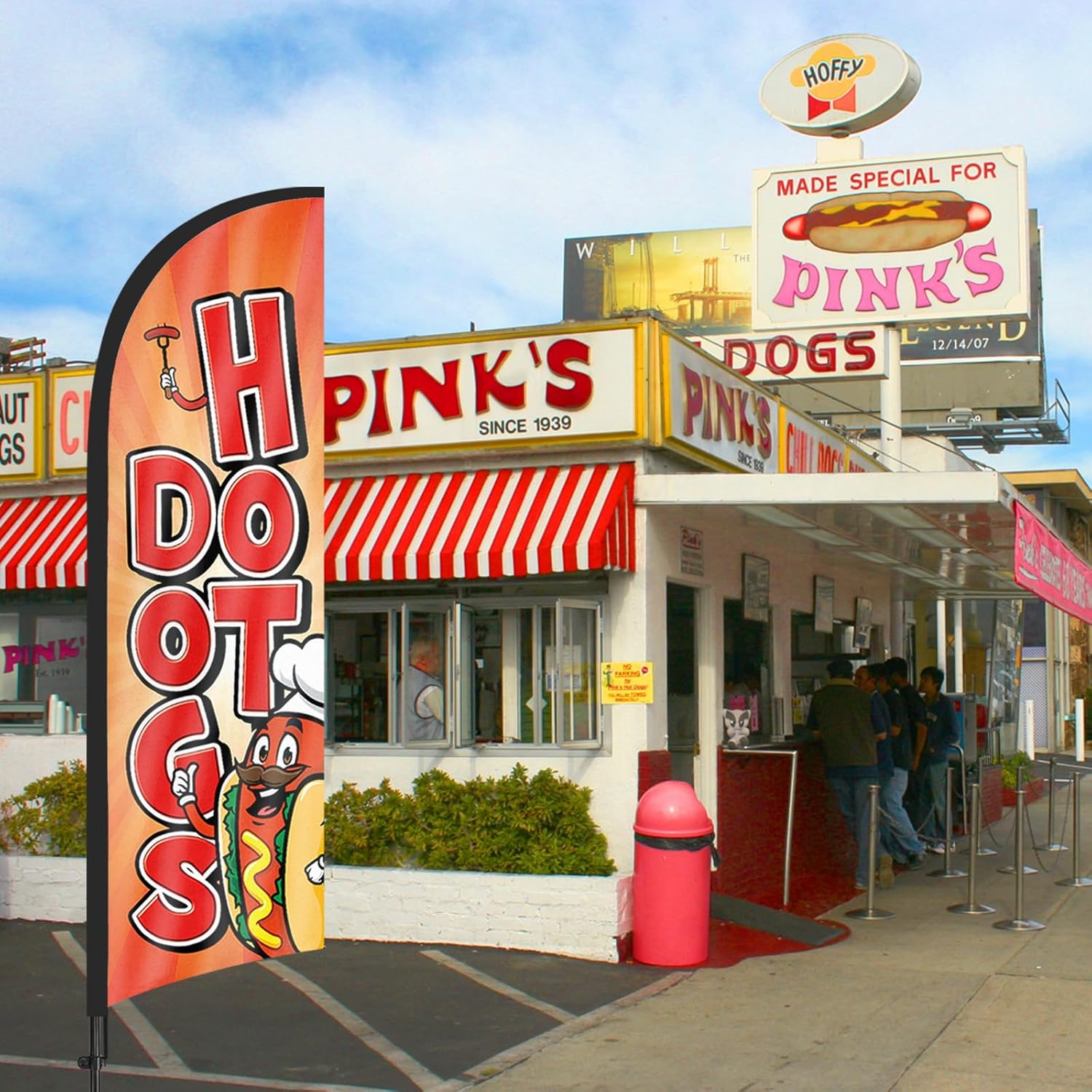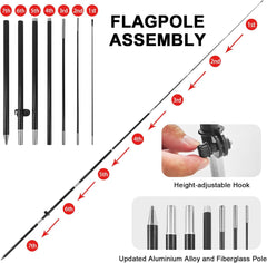 【Weather Resistance】 These Hot Dogs feather flags are designed to withstand various weather conditions, high-quality aluminum and fiberglass pole, tear-resistant polyester fabric making it sturdy and heavy-duty to be held up well even in rain, snow, sleet, and strong winds.