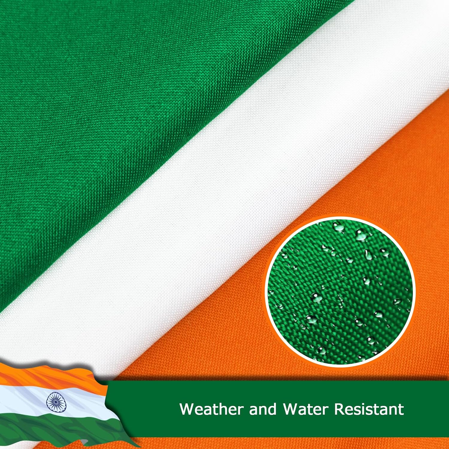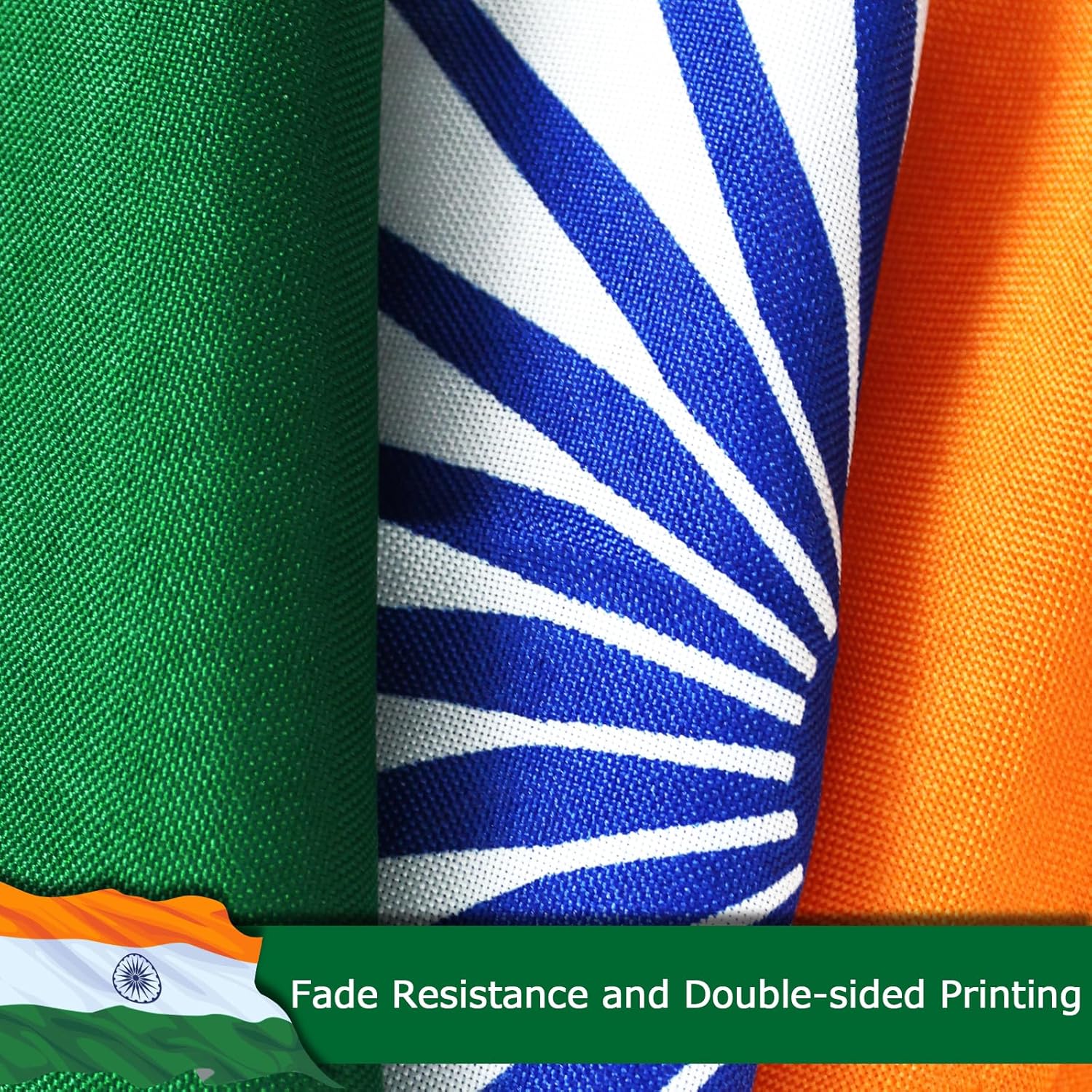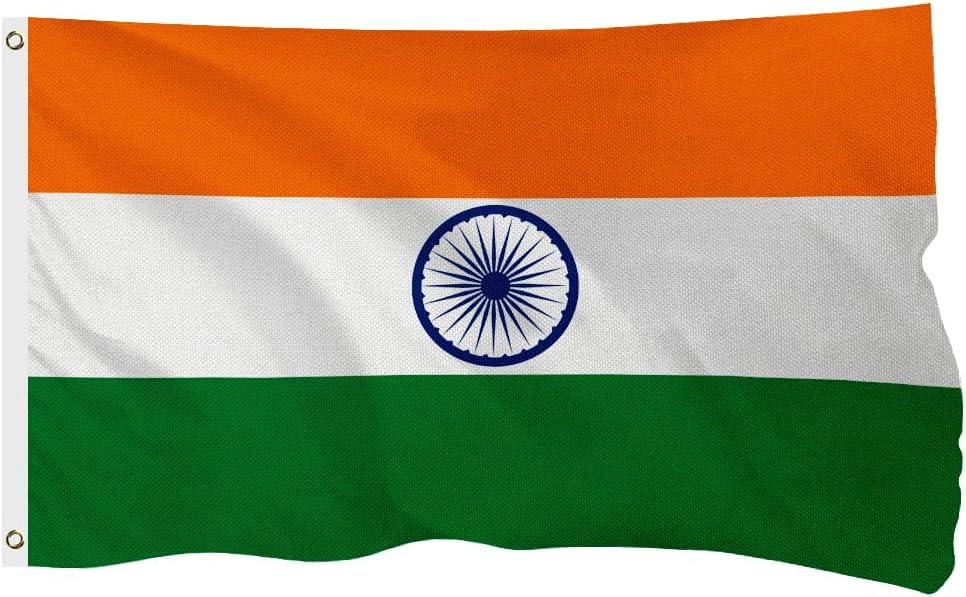India Indian Flag for Outside, 400D Heavy Duty Polyester, Double-Sided Printing, Quadruple Stitched Fly Hem, Fade Resistant, 2 Brass Grommets