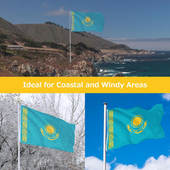 Kazakhstan Kazakhstani Flag for Outside, 400D Heavy Duty Polyester, Double-Sided Printing, Quadruple Stitched Fly Hem, Fade Resistant, 2 Brass Grommets