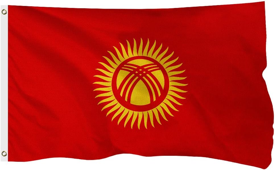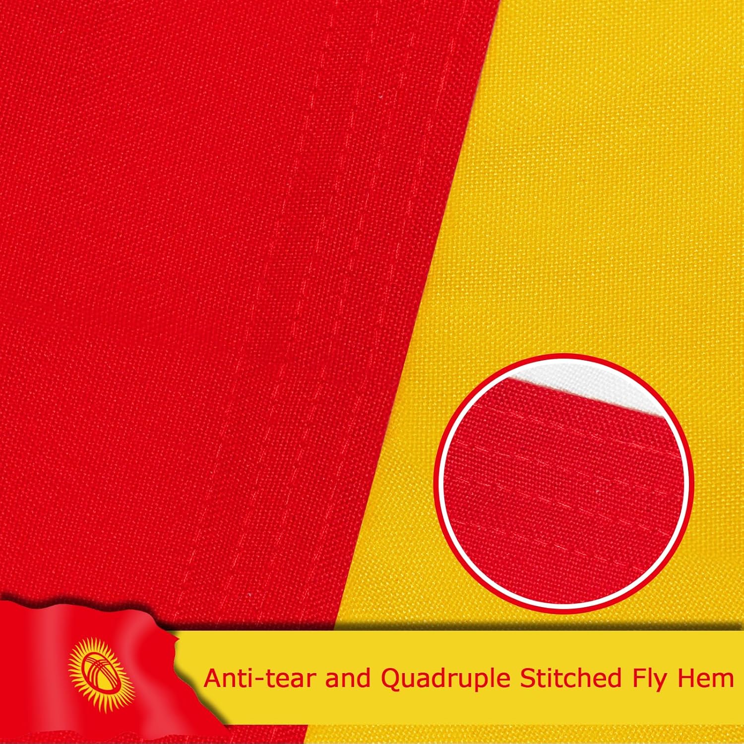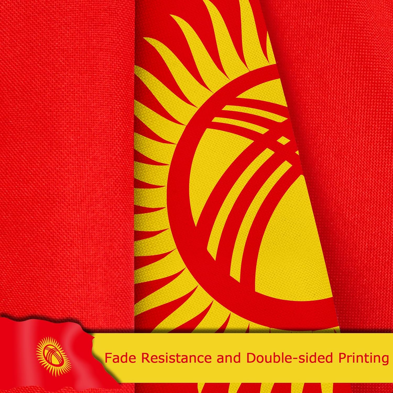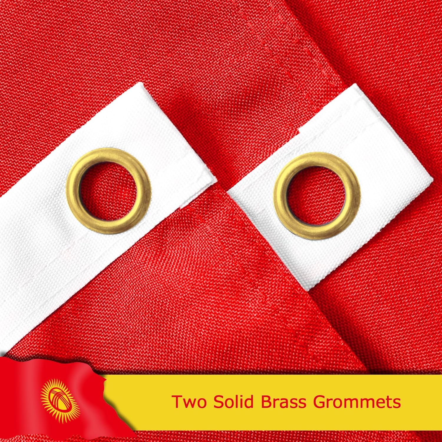 Kyrgyzstan Kyrgyz Flag for Outside, 400D Heavy Duty Polyester, Double-Sided Printing, Quadruple Stitched Fly Hem, Fade Resistant, 2 Brass Grommets