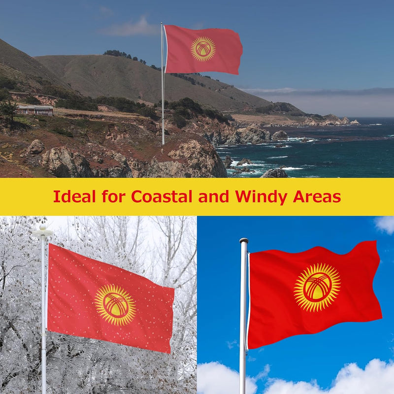 - 【400D Heavy-Duty Anti-Tear Flag】Crafted from premium 400D polyester, this flag is thicker, heavier, and more durable than standard flags. It’s waterproof, UV-resistant, and features a smooth, deluxe finish. The fly end is reinforced with a canvas header and four rows of lock stitching, providing exceptional resistance to fraying and tearing—perfect for coastal or high-wind areas.
